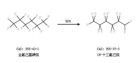 1.通過全氟己基碘烷合成1H-十三氟己烷,收率約92%;