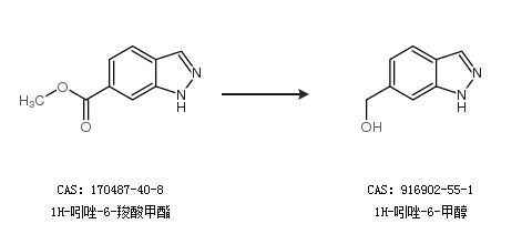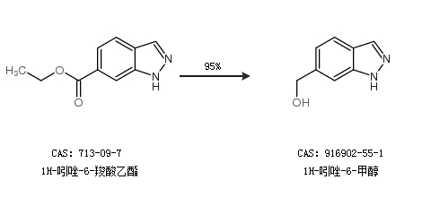 1.通過1H-吲唑-6-羧酸乙酯合成1H-吲唑-6-甲醇,收率約95%;