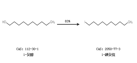1.通過1-癸醇合成1-碘癸烷,收率約83%;