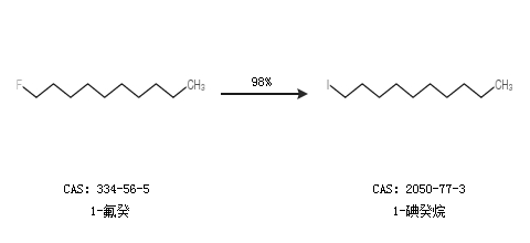 2.通過1-氟癸合成1-碘癸烷,收率約98%;