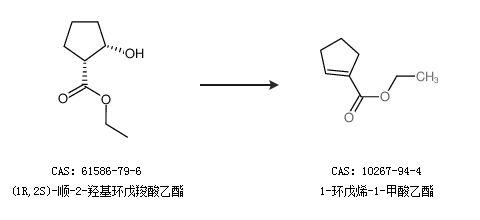 1.通過(1R,2S)-順-2-羥基環(huán)戊羧酸乙酯合成1-環(huán)戊烯-1-甲酸乙酯