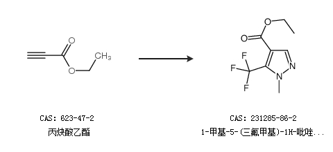 1.通過丙炔酸乙酯合成1-甲基-5-(三氟甲基)-1H-吡唑-4-羧酸乙酯