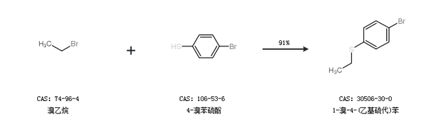 2.通過溴乙烷和4-溴苯硫酚合成1-溴-4-(乙基硫代)苯,收率約91%;