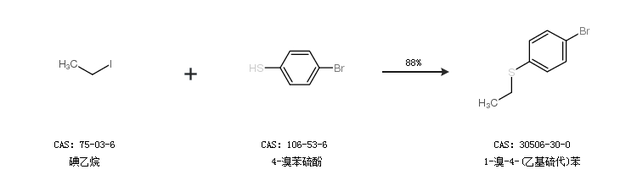 1.通過碘乙烷和4-溴苯硫酚合成1-溴-4-(乙基硫代)苯,收率約88%;