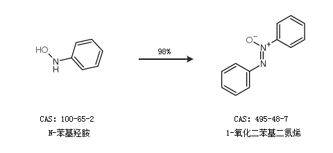 2.通過N-苯基羥胺合成1-氧化二苯基二氮烯,收率約98%;