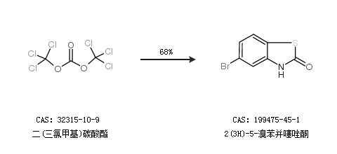 1.通過(guò)二(三氯甲基)碳酸酯合成2(3H)-5-溴苯并噻唑酮,收率約68%;