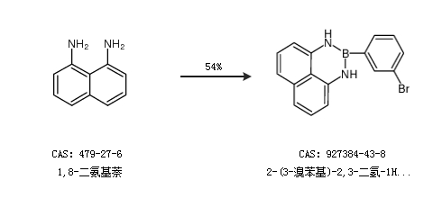 2.通過(guò)1,8-二氨基萘合成2-(3-溴苯基)-2,3-二氫-1H-萘并[1,8-de][1,3,2]二氮雜硼烷,收率約54%;