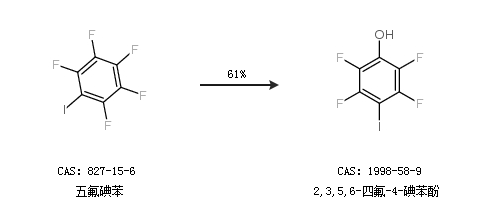 1.通過(guò)五氟碘苯合成2,3,5,6-四氟-4-碘苯酚,收率約61%;