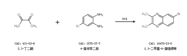 1.通過2,3-丁二酮和4-溴鄰苯二胺合成2,3-二甲基-6-溴喹噁啉,收率約81%;