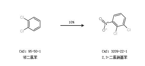 1.通過鄰二氯苯合成2,3-二氯硝基苯,收率約10%;