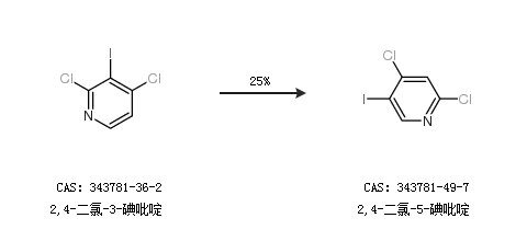 1.通過(guò)2,4-二氯-3-碘吡啶合成2,4-二氯-5-碘吡啶,收率約25%;