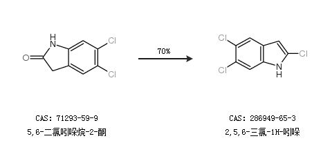 1.通過5,6-二氯吲哚烷-2-酮合成2,5,6-三氯-1H-吲哚,收率約70%;