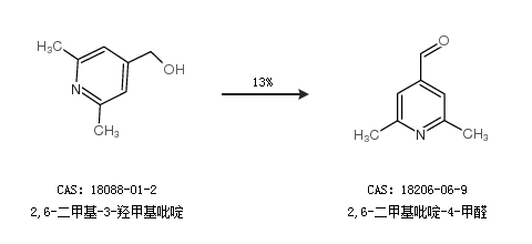 1.通過(guò)2,6-二甲基-3-羥甲基吡啶合成2,6-二甲基吡啶-4-甲醛,收率約13%;