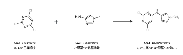 2.通過(guò)2,4,6-三氯嘧啶和1-甲基-4-氨基咪唑合成2,6-二氯-N-(1-甲基-1H-咪唑-4-基)嘧啶-4-胺