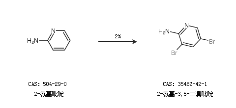 2.通過2-氨基吡啶合成2-氨基-3,5-二溴吡啶,收率約2%;
