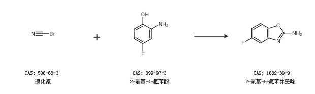 1.通過溴化氰和2-氨基-4-氟苯酚合成2-氨基-5-氟苯并惡唑