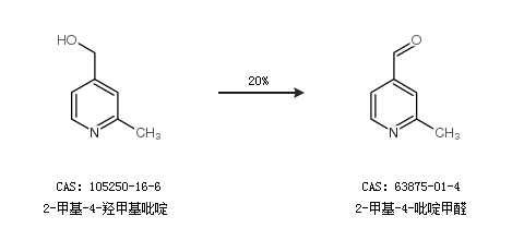 1.通過2-甲基-4-羥甲基吡啶合成2-甲基-4-吡啶甲醛,收率約20%;