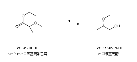 1.通過S)-(-)-2-甲氧基丙酸乙酯合成2-甲氧基丙醇,收率約70%;