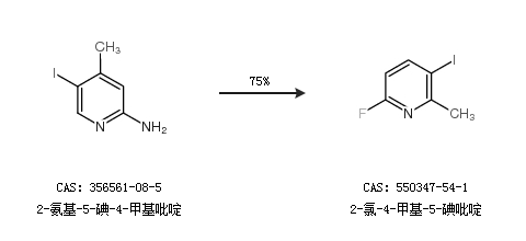 1.通過2-氨基-5-碘-4-甲基吡啶合成2-氯-4-甲基-5-碘吡啶,收率約75%;