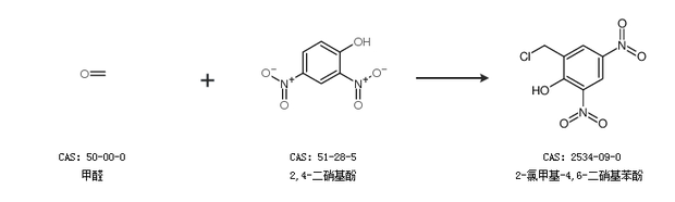 1.通過甲醛和2,4-二硝基酚合成2-氯甲基-4,6-二硝基苯酚