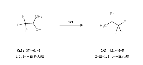 2.通過1,1,1-三氟異丙醇合成2-溴-1,1,1-三氟丙烷,收率約87%;
