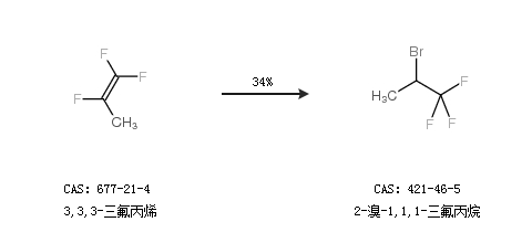 1.通過3,3,3-三氟丙烯合成2-溴-1,1,1-三氟丙烷,收率約34%;