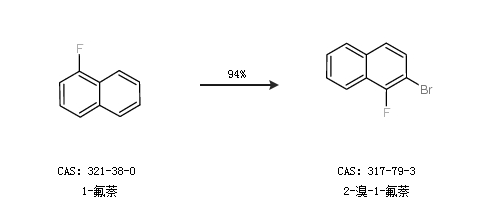 1.通過1-氟萘合成2-溴-1-氟萘,收率約94%;