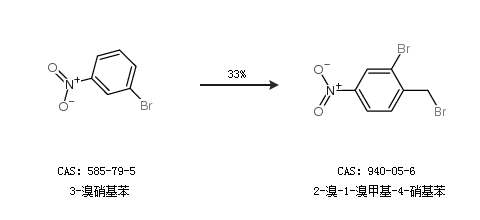1.通過(guò)3-溴硝基苯合成2-溴-1-溴甲基-4-硝基苯,收率約33%;