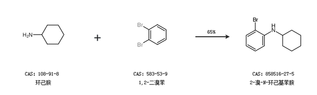 1.通過環(huán)己胺和1,2-二溴苯合成2-溴-N-環(huán)己基苯胺,收率約65%;