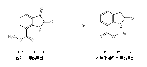 1.通過靛紅-7-甲酸甲酯合成2-氧化吲哚-7-甲酸甲酯