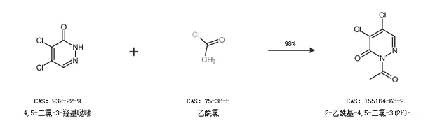 1.通過(guò)4,5-二氯-3-羥基噠嗪和乙酰氯合成2-乙?;?4,5-二氯-3(2H)-噠嗪,收率約98%;