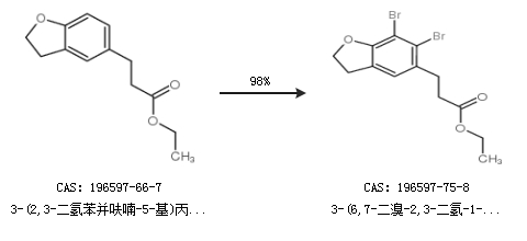 1.通過(guò)3-(2,3-二氫苯并呋喃-5-基)丙酸乙酯合成3-(6,7-二溴-2,3-二氫-1-苯并呋喃-5-基)丙酸乙酯,收率約98%;