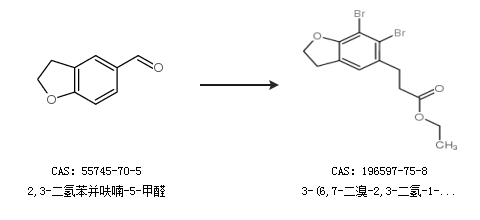 2.通過(guò)2,3-二氫苯并呋喃-5-甲醛合成3-(6,7-二溴-2,3-二氫-1-苯并呋喃-5-基)丙酸乙酯