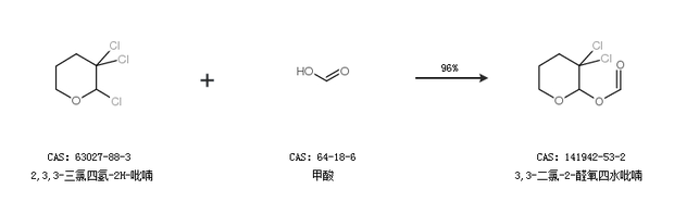 1.通過2,3,3-三氯四氫-2H-吡喃和甲酸合成3,3-二氯-2-醛氧四水吡喃,收率約96%;