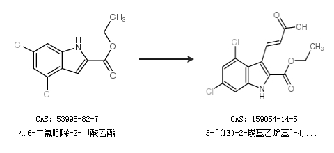 2.通過4,6-二氯吲哚-2-甲酸乙酯合成3-[(1E)-2-羧基乙烯基]-4,6-二氯-1H-吲哚-2-甲酸乙酯