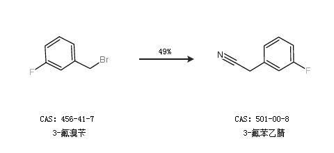 1.通過(guò)3-氟溴芐合成3-氟苯乙腈,收率約49%;