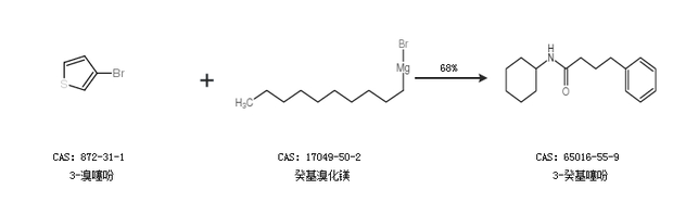 2.通過3-溴噻吩和癸基溴化鎂合成3-癸基噻吩,收率約68%;