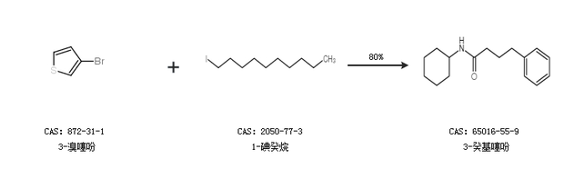 1.通過3-溴噻吩和1-碘癸烷合成3-癸基噻吩,收率約80%;