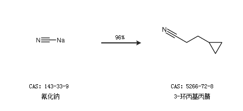1.通過(guò)氰化鈉合成3-環(huán)丙基丙腈,收率約96%;