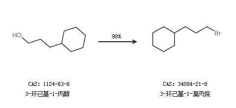 1.通過(guò)3-環(huán)已基-1-丙醇合成3-環(huán)己基-1-溴丙烷,收率約98%;
