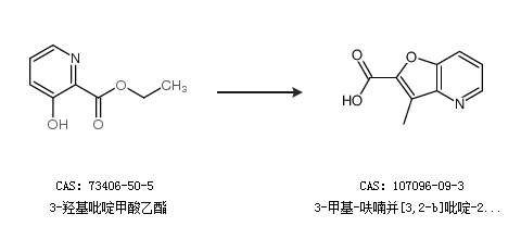 1.通過(guò)3-羥基吡啶甲酸乙酯合成3-甲基-呋喃并[3,2-b]吡啶-2-羧酸