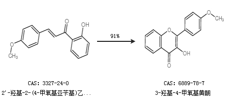 1.通過2''-羥基-2-(4-甲氧基亞芐基)乙酰苯合成3-羥基-4-甲氧基黃酮,收率約91%;