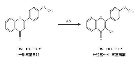 2.通過4--甲氧基黃酮合成3-羥基-4-甲氧基黃酮,收率約93%;