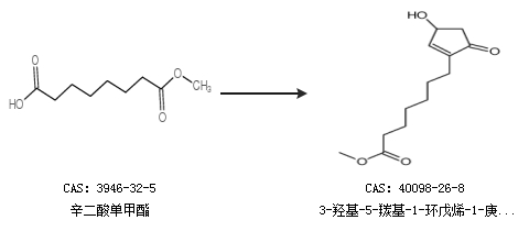 2.通過(guò)辛二酸單甲酯合成3-羥基-5-羰基-1-環(huán)戊烯-1-庚酸甲酯
