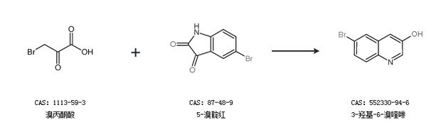 1.通過溴丙酮酸和5-溴靛紅合成3-羥基-6-溴喹啉