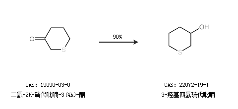 1.通過二氫-2H-硫代吡喃-3(4h)-酮合成3-羥基四氫硫代吡喃,收率約90%;