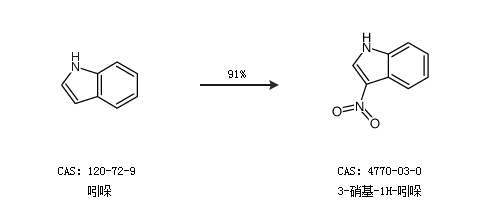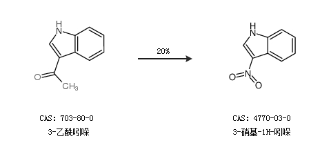 2.通過(guò)3-乙酰吲哚合成3-硝基-1H-吲哚,收率約20%;