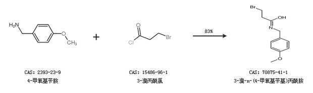 1.通過(guò)4-甲氧基芐胺和3-溴丙酰氯合成3-溴-n-(4-甲氧基芐基)丙酰胺,收率約83%;