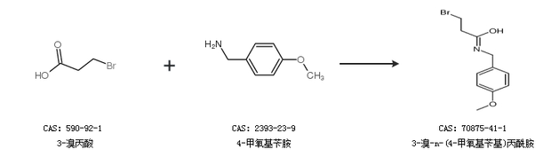 2.通過(guò)3-溴丙酸和4-甲氧基芐胺合成3-溴-n-(4-甲氧基芐基)丙酰胺