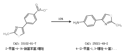 1.通過(guò)2-甲基-4-(4-硝基苯基)噻唑合成4-(2-甲基-1,3-噻唑-4-基)苯胺,收率約10%;